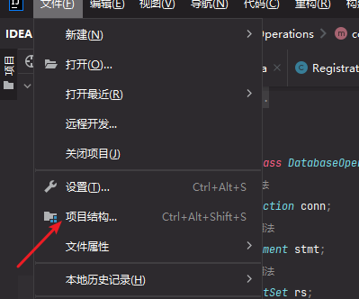 - 这里以 IDEA 为例,打开 IDEA. 打开项目结构 (theProjectStructure 使用的插件翻译,不知道准不准,下面一样)