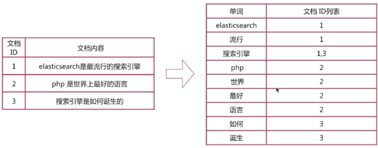 - 倒排索引: 通过倒排索引表的 字段(单词) 找到对应的文章的id