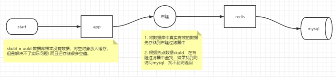 缓存穿透: 是指查询一个不存在的数据,由于缓存无法命中,将去查询数据库,但是数据库也无此记录,并且出于容错考虑,我们没有将这次查询的null写入缓存,这将导致这个不存在的数据每次请求都要到存储层去查询,失去了缓存的意义。在流量大时,可能DB就挂掉了,要是有人利用不存在的key频繁攻击我们的应用,这就是漏洞。
